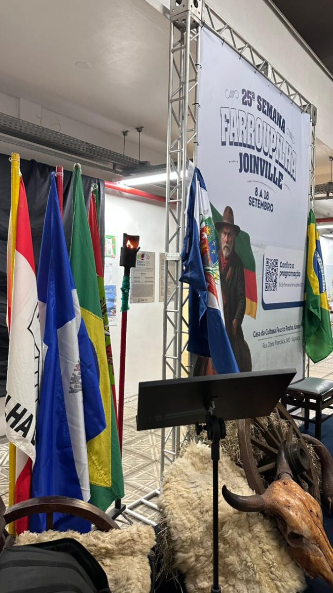 O evento foi aberto com a tradicional chama crioula, trazida pelo Movimento Farroupilha de Joinville e exposta no átrio da Casa da Cultura. Lucas explicou sobre esse símbolo de celebração. “A chama crioula, para nós gaúchos, é uma questão de honra, é honrar o pessoal que lutou na Guerra dos Farrapos. Para nós isso representa o máximo de respeito”.